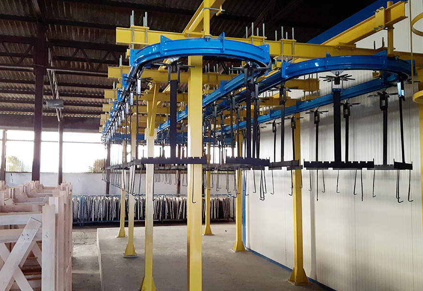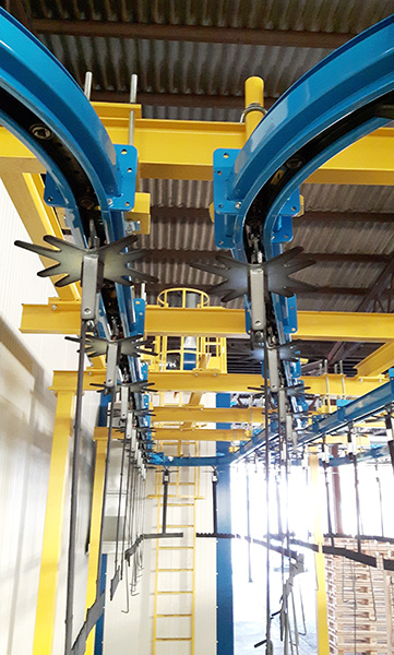 Questo impianto garantisce un’elevata efficienza di movimentazione e un controllo preciso dei manufatti durante l’intero processo di trattamento superficiale.