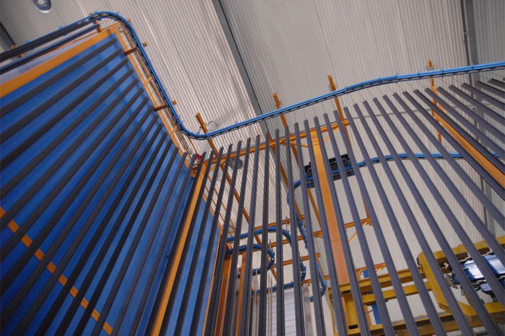 Si tratta di un impianto ad alte prestazioni, sviluppato per garantire un flusso produttivo costante e una movimentazione precisa dei pezzi durante tutte le fasi di trattamento.
