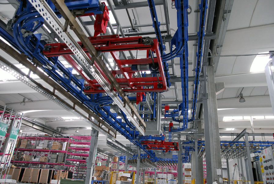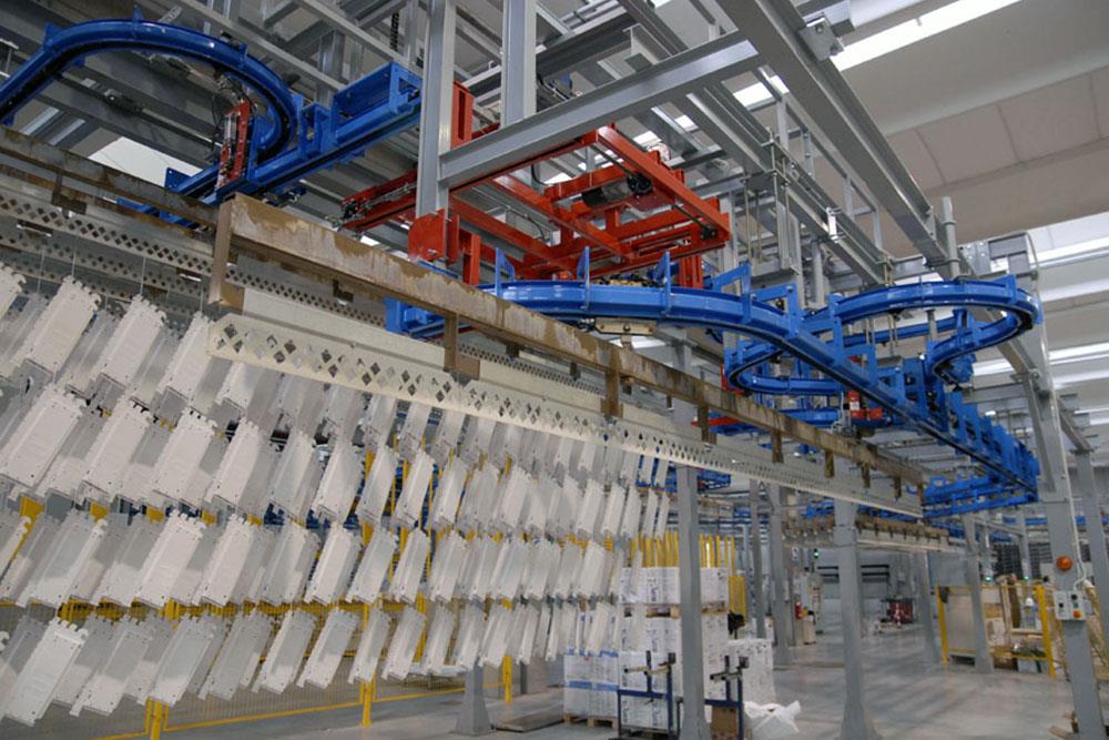 Il convogliatore aereo birotaia power&free XD37/45-03 è stato progettato da CM Automazione per la movimentazione sulla linea di verniciatura scaffalature metalliche. L’impianto integra gruppi traslo-elevatori e unità di trasporto lunghe 6 metri, che permettono una gestione efficiente del flusso dei manufatti.