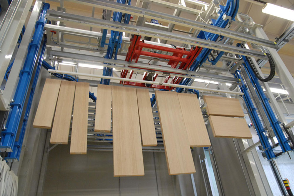 Il convogliatore aereo birotaia power&free XD37/45-04 è stato progettato da CM Automazione per la movimentazione sulla linea di verniciatura serramenti in legno. L’impianto è dotato di gruppi traslo-elevatori, studiati per assicurare stabilità e controllo dei manufatti durante tutto il percorso produttivo.