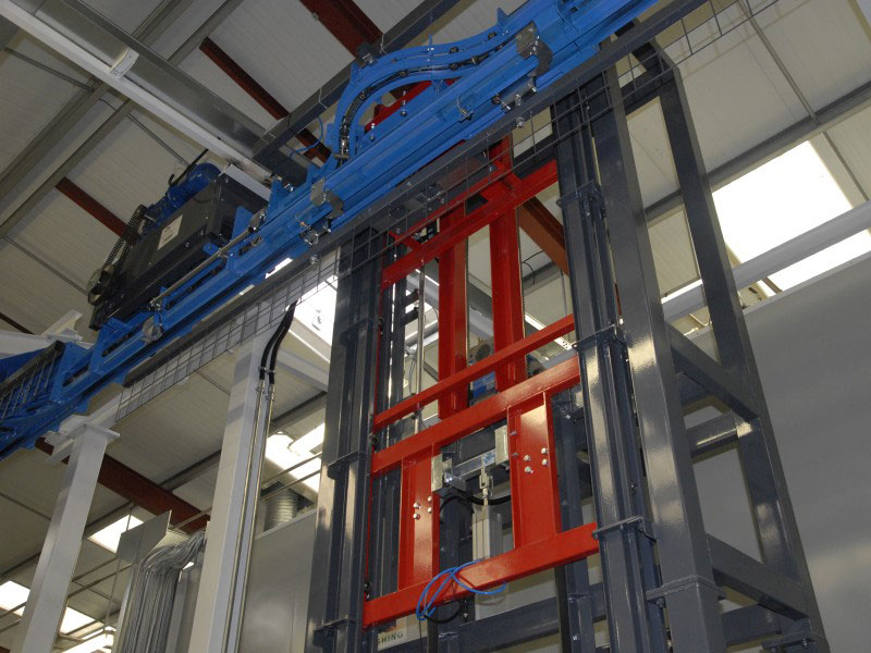Queste realizzazioni comprendono sistemi di rotazione per i ganci porta manufatti applicabili sia su trasportatori monorotaia sia birotaia, elevatori o discensori per il cambio di piano, trasferitori per il corretto spostamento dei carichi e sistemi di blocco e centraggio, studiati per assicurare precisione, sicurezza e continuità operativa lungo l’intero percorso dei manufatti.