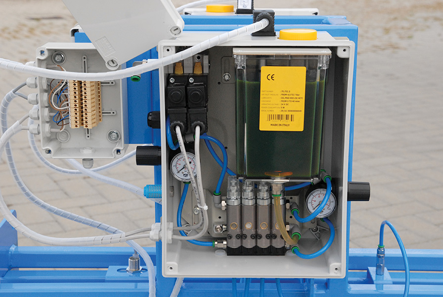 Il sistema di lubrificazione minimale rappresenta un’evoluzione rispetto alla tradizionale lubrificazione ad emulsione d’olio, permettendo di adeguare l’impianto trasportatore alle normative vigenti. Grazie alle micro pompe pneumatiche, il lubrificante viene dosato in quantità minime e trasportato da un flusso d’aria compressa direttamente sul punto di contatto, senza generare nebbia o vapori nocivi nell’ambiente di lavoro. Il lubrificante vegetale impiegato, antigoccia o ad alta densità, viene consumato durante la lavorazione, non lascia residui né gocciolamenti sui prodotti trasportati e garantisce un ancoraggio preciso, eliminando l’obbligo di registrazione e smaltimento dei liquidi esausti.