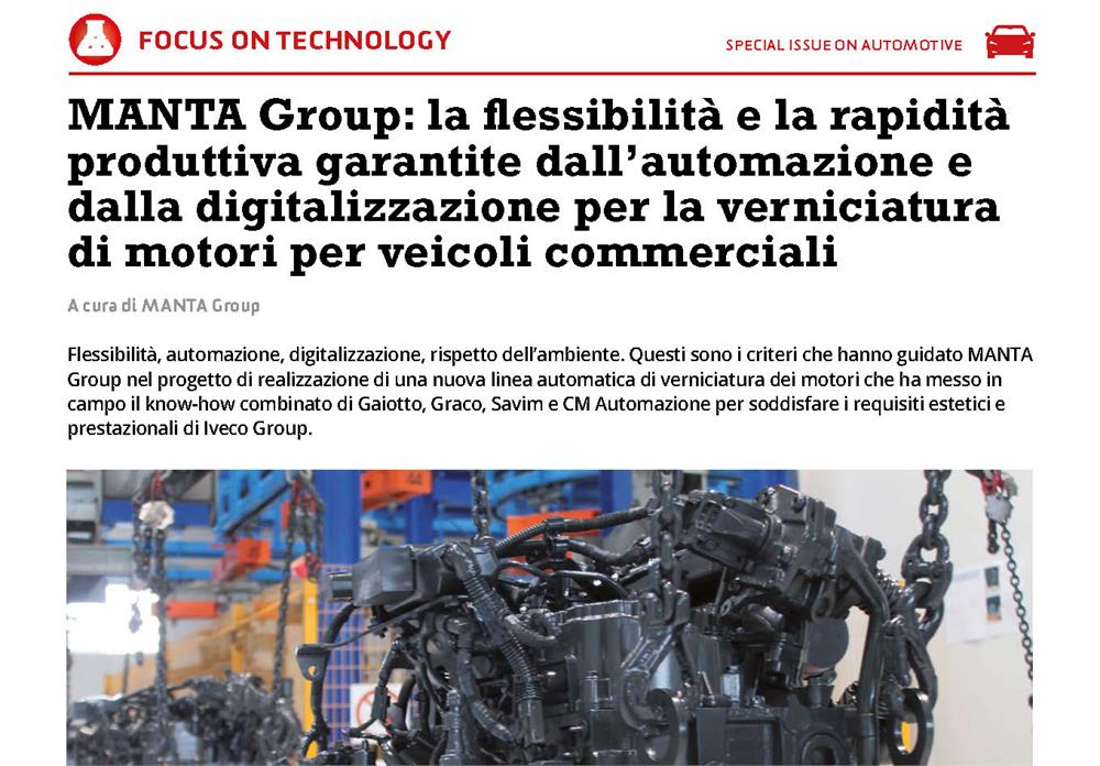 MANTA Group: Flessibilità, automazione, digitalizzazione, rispetto dell’ambiente. Questi sono i criteri che hanno guidato MANTA Group nel progetto di realizzazione di una nuova linea automatica di verniciatura dei motori che ha messo in campo il know-how combinato di Gaiotto, Graco, Savim e CM Automazione per soddisfare i requisiti estetici e prestazionali di Iveco Group.